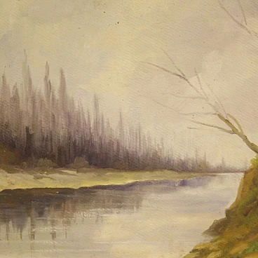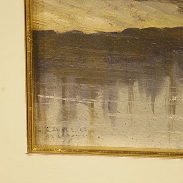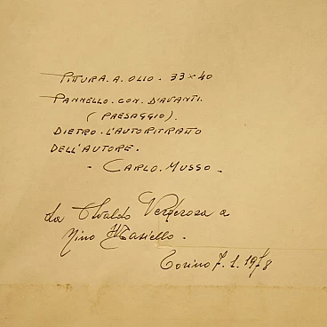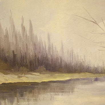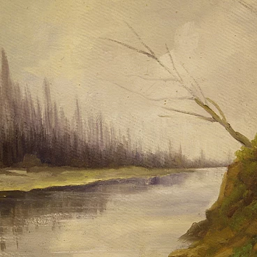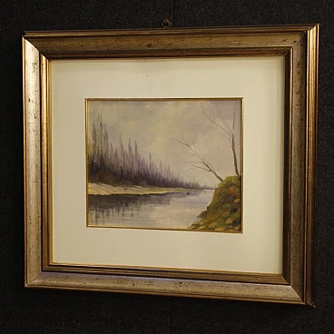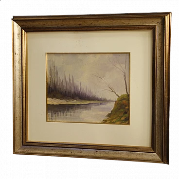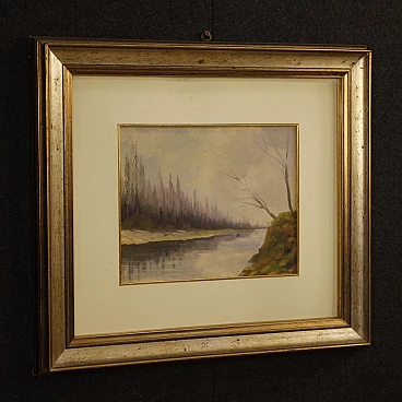 Carlo Musso, paesaggio con fiume, dipinto a olio su tavola