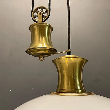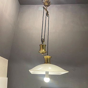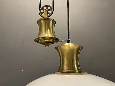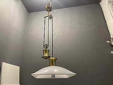 Lampada a sospensione in ottone e plastica con carrucola, anni '80