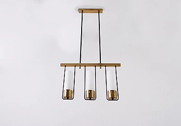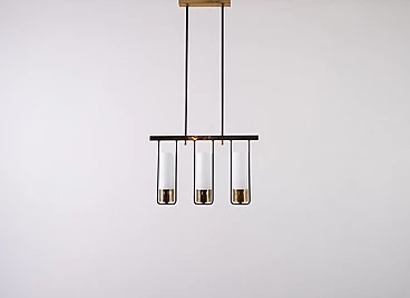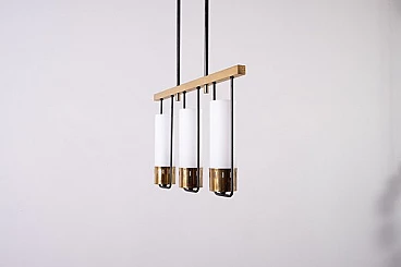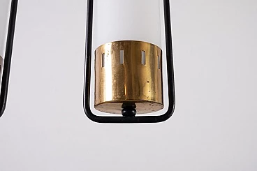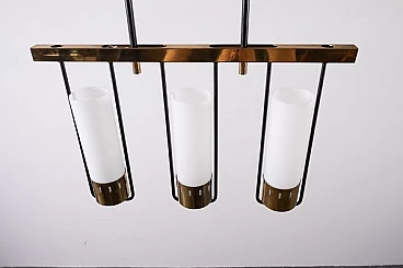 Lampada da soffitto in ottone e vetro opalino, anni '50