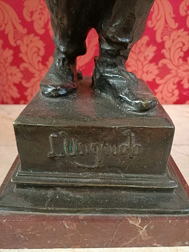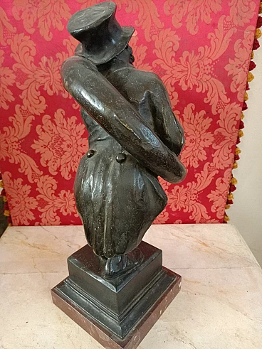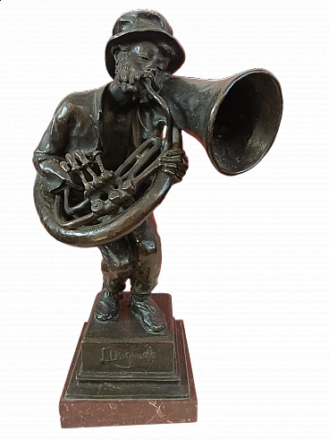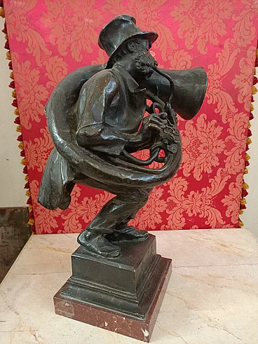Scultura in bronzo a cera persa raffigurante un suonatore di tromba, fine '800