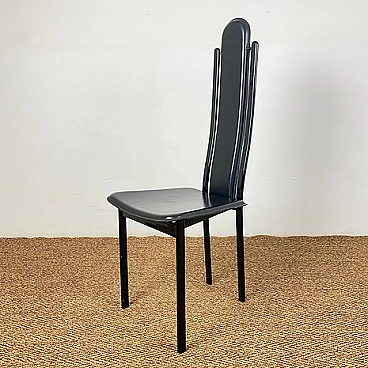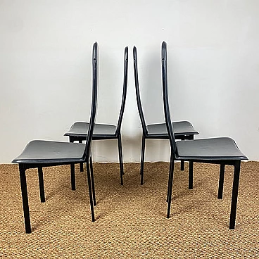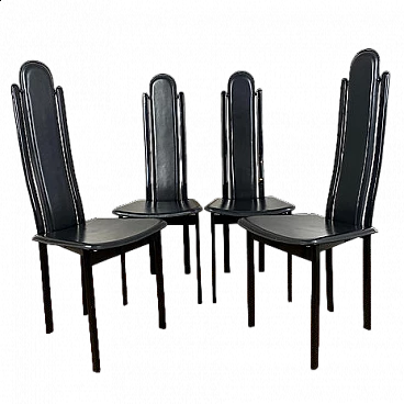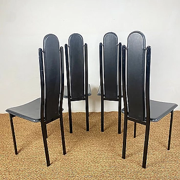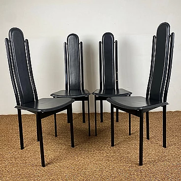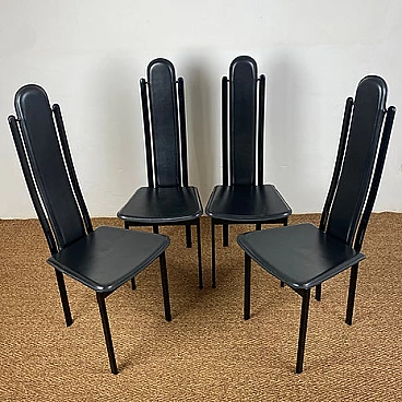 4 Sedie con schienale alto in acciaio e cuoio di Recanatini, anni '80