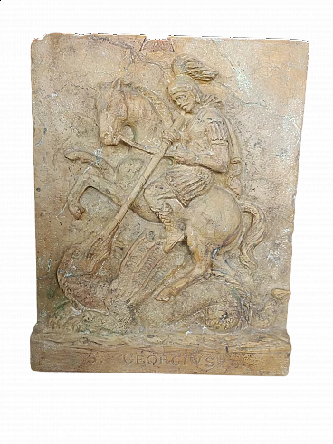Bassorilievo di San Giorgio e il drago in marmo Nembro giallo, fine '800