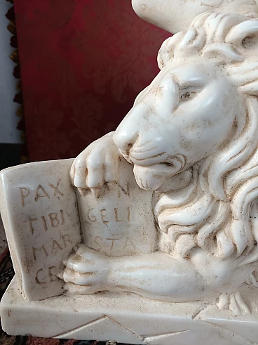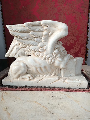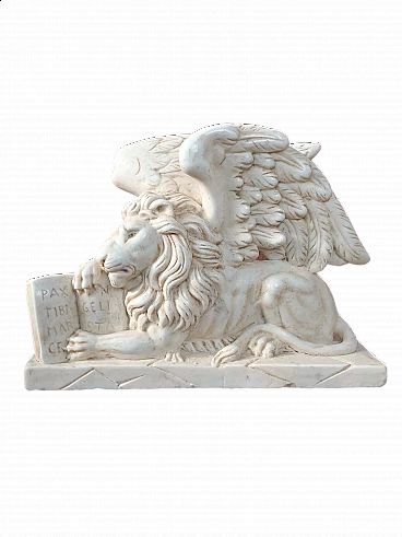 Scultura di Leone di San Marco in marmo bianco Thassos, inizio '900