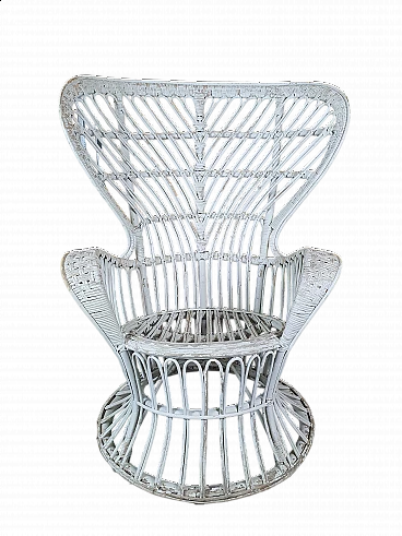 Poltrona in vimini laccato bianco di Lio Carminati per Bonacina, anni '50