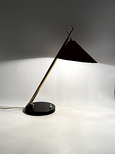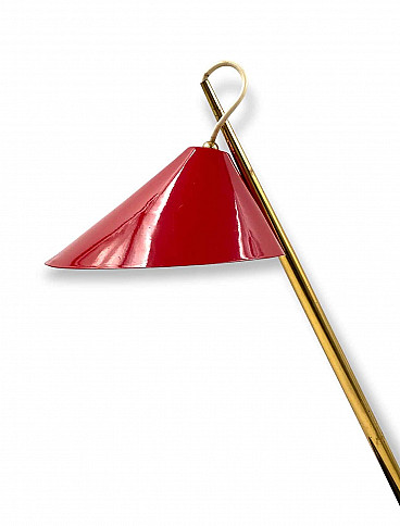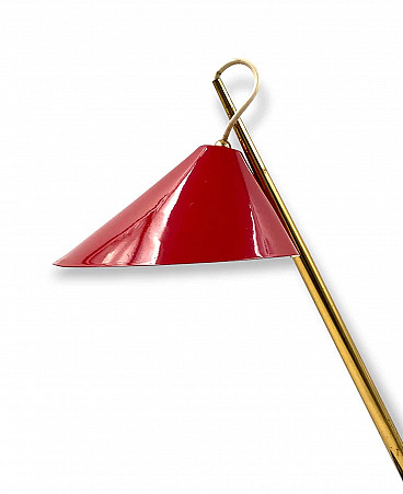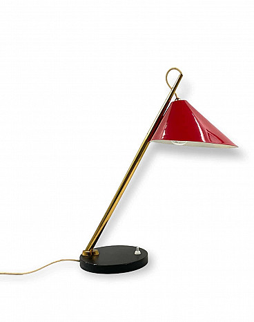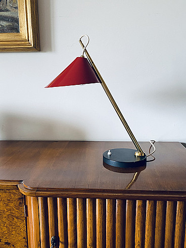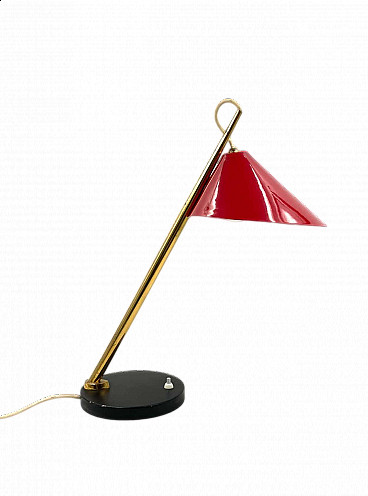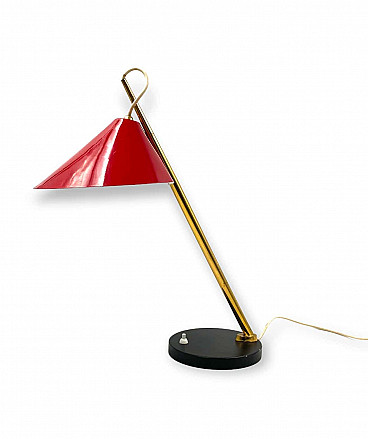 Lampada da tavolo rossa in metallo e ottone per Lumen, anni '60