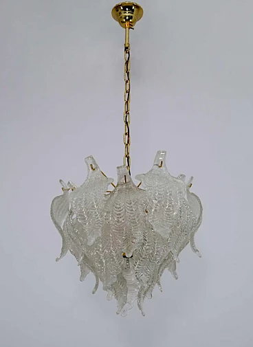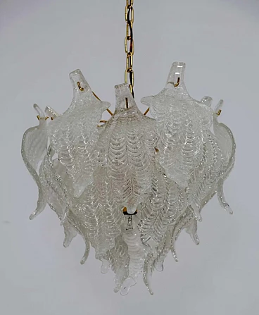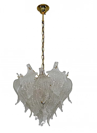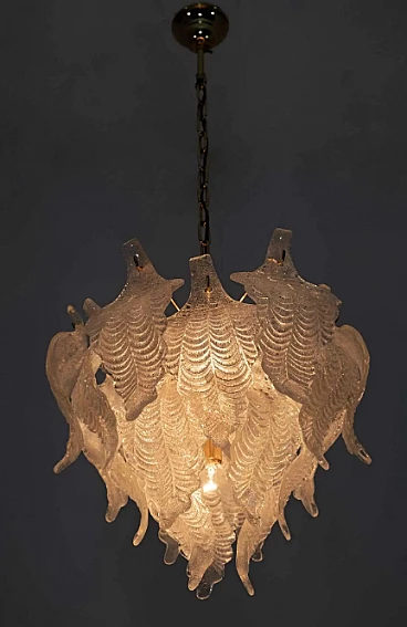 Lampdario a foglie in vetro di Murano e ottone di Mazzega, anni '70