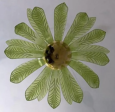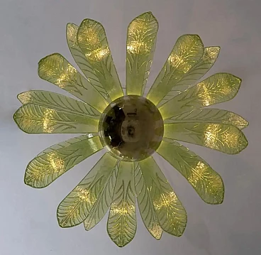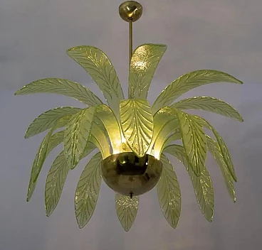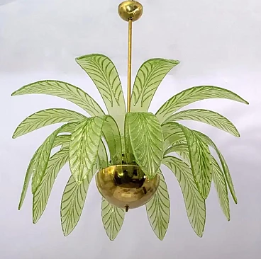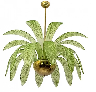 Lampadario a foglie di palma in vetro di Murano e ottone, anni '70
