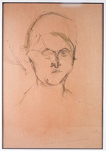Ritratto in acquerello su carta a firma di Ernesto Treccani (1920-2009).