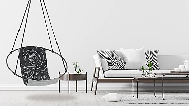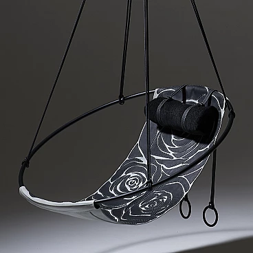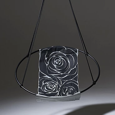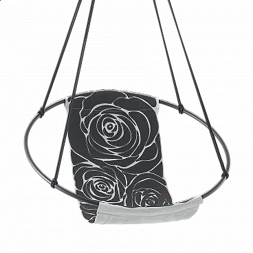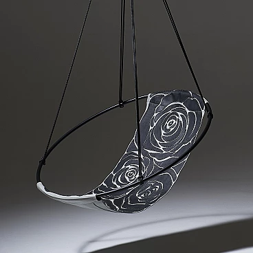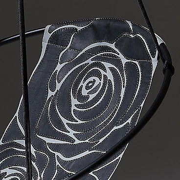 Spogliata di ogni eccesso, questa poltrona sospesa ha una struttura rotonda con seduta in pelle che pende libera al suo interno, elegante ma anche confortevole, perfetta per ogni spazio. Arricchita da un motivo a rose. L'abbinamento tra la purezza del semplice tubolare metallico e il calore sensuale della pelle naturale le conferisce un aspetto elegante ma anche funzionale.