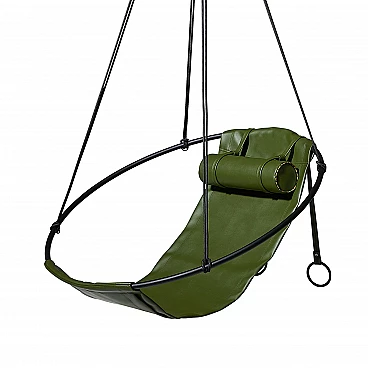 Poltrona sospesa realizzata in pelle di cactus, un materiale vegano ecologico altamente sostenibile.