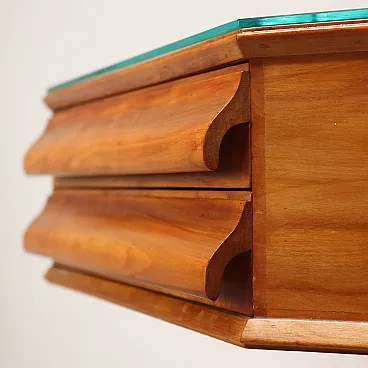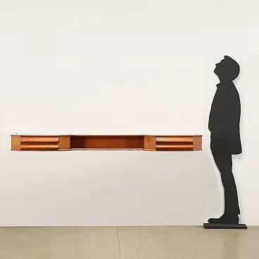 Consolle a parete in acero impiallacciato con piano in vetro, anni '60
