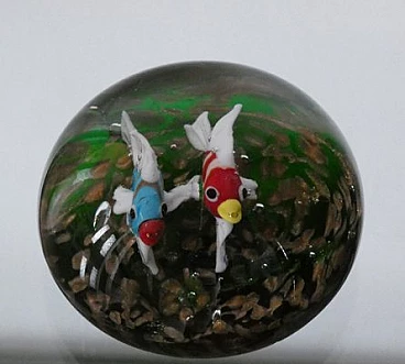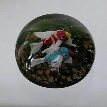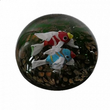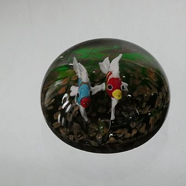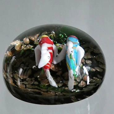 Fermacarte in vetro di Murano con pesci pappagallo, anni '50