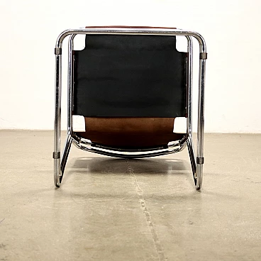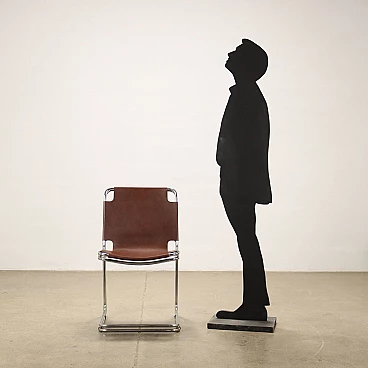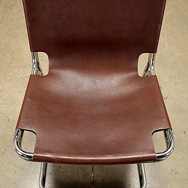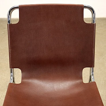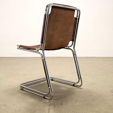 4 Sedie con struttura tubolare in metallo cromato e cuoio, anni '70