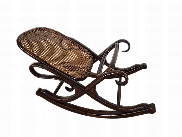 Poggiapiedi in stile viennese in faggio curvato e paglia di Vienna originale dell'epoca. Non riporta nessun marchio Thonet o J.J. Kohn però è presente sul catalogo sotto il modello 7001 della ditta viennese. Le viti sono originali, così come la paglia. Inoltre è stato lucidato ad olio.