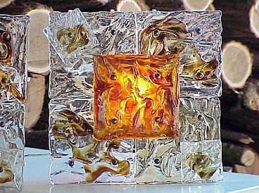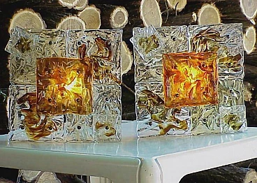 Coppia di applique patchwork in vetro di Toni Zuccheri per Venini, anni '70