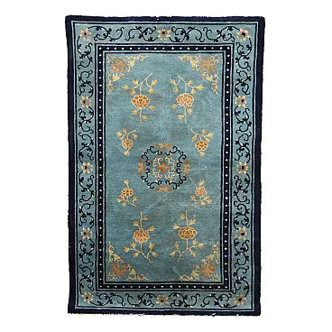 Tappeto Pechino azzurro in cotone e lana; nodo fine. Fabbricazione manuale.