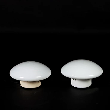 Coppia di lampade da tavolo o plafoniere anni '70 con diffusore in vetro opalino, montatura in metallo verniciato.