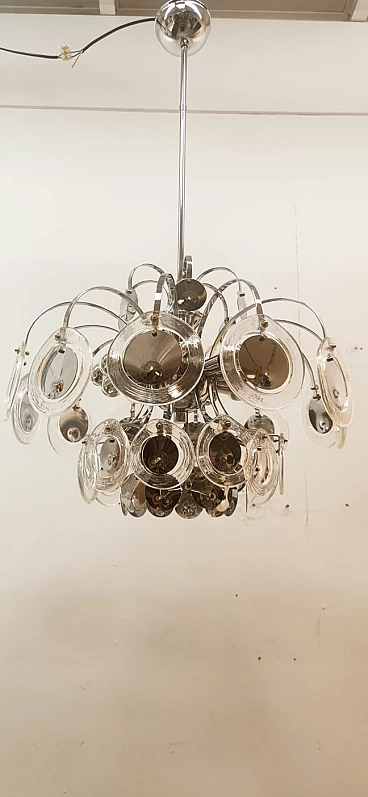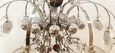 Lampadario a 12 luci in acciaio e vetro di Murano di Sciolari, anni '60