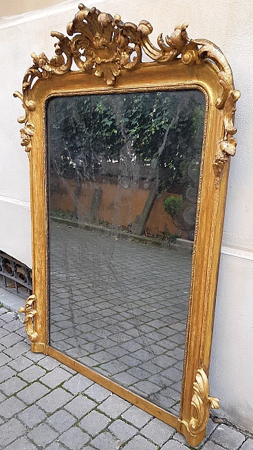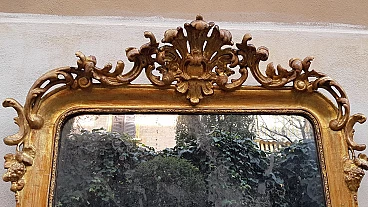 Specchiera in legno dorato a motivi floreali, prima metà '800