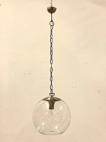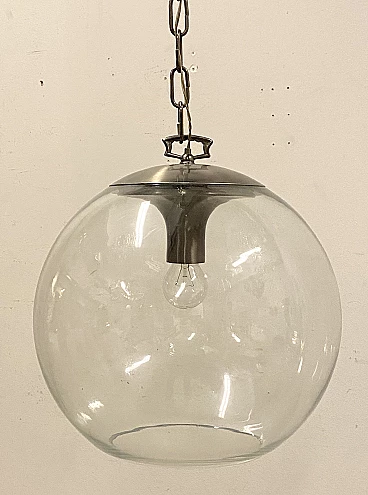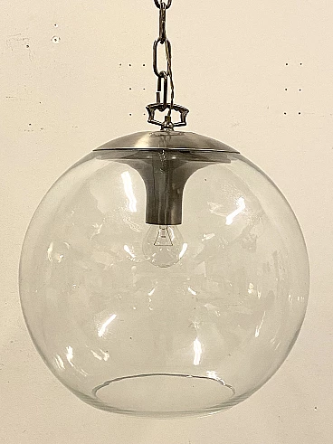 Lampada a sospensione in acciaio e vetro di Luigi Caccia Dominioni, anni '60
