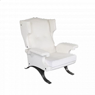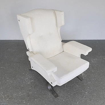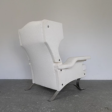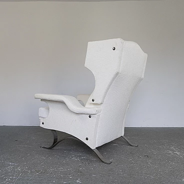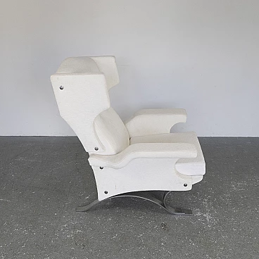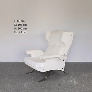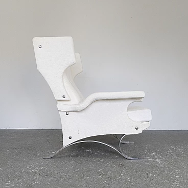 Poltrona in tessuto bianco e metallo cromato, anni '60