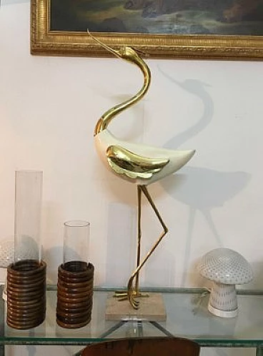 Scultura di airone in legno laccato e bronzo di Antonio Pavia, anni '70