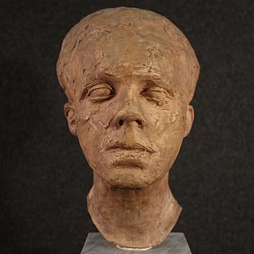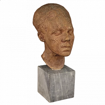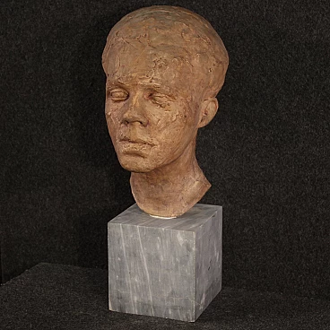 Scultura in terracotta di volto di uomo con base in marmo, anni '60