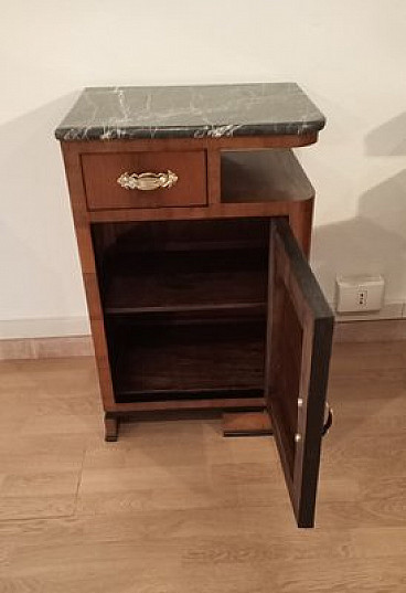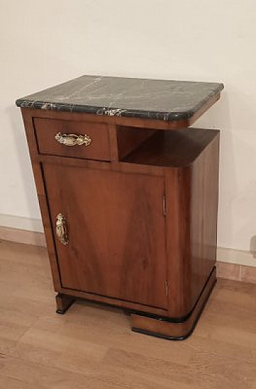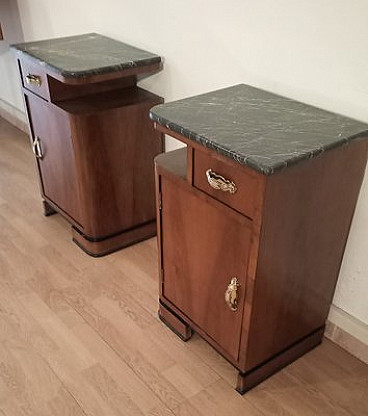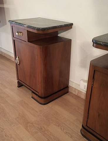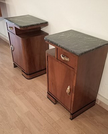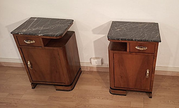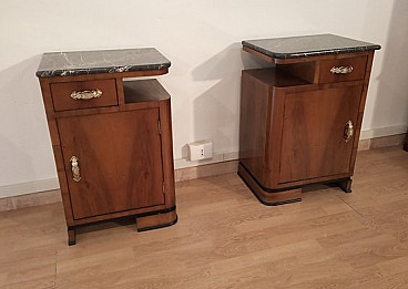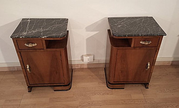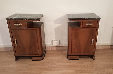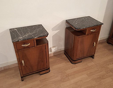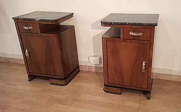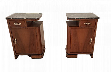 Coppia di comodini Art Déco in noce con piano in marmo, anni '30