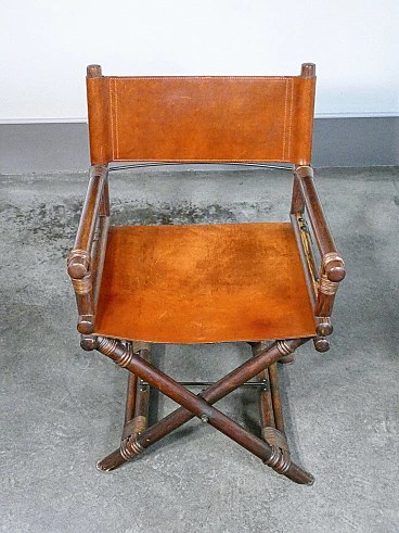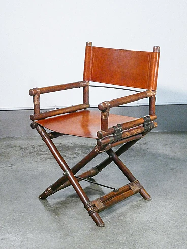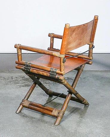 Sedia da regista in bambù e cuoio di Lyda Levi, anni '60