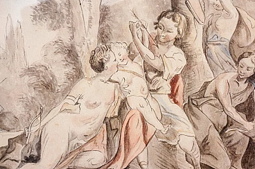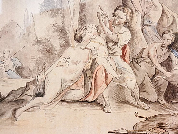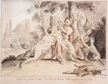 Cupido gioca con le Nife e Telemaco, acquerello e matita su carta, '800