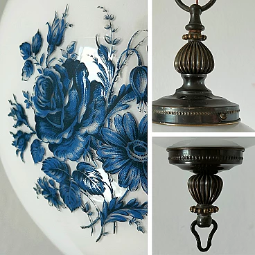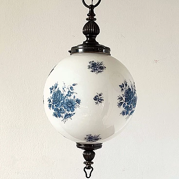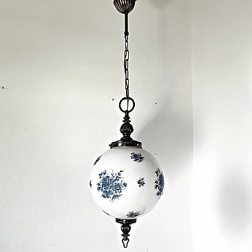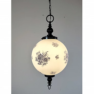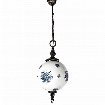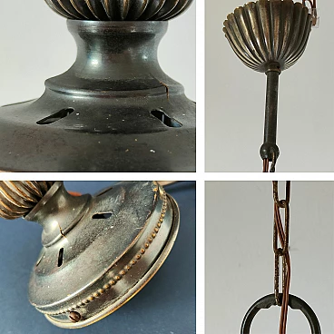 Lampada a sospensione in metallo brunito e vetro, anni '60