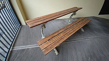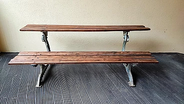Panca in rovere e ghisa trasformabile in tavolo, anni '50