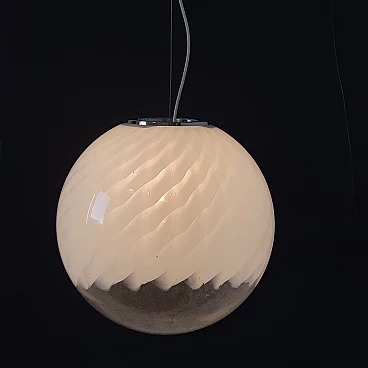 Lampada a sospensione in vetro di Murano nello stile di Venini, anni '70