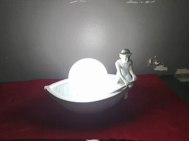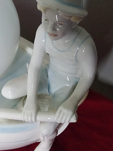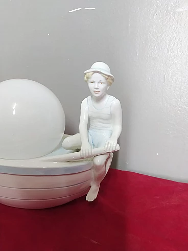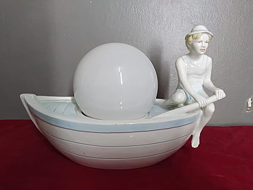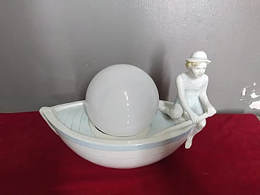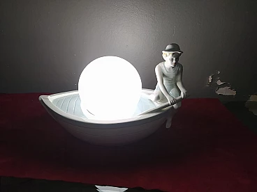 Lampada da tavolo in porcellana policromata con gondoliere, anni '50