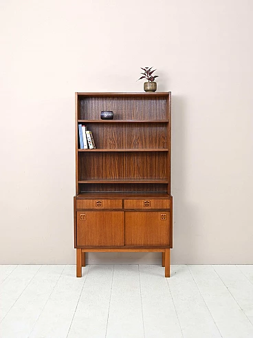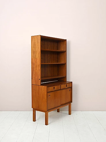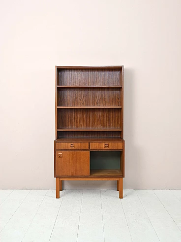 Mobile scandinavo con scaffalature. Una libreria pratica e originale composta da un mobile con ante scorrevoli e due cassetti e da un sistema di scaffalature ad altezza regolabile. I tratti inconfondibili dei mobili dell’azienda Bodafors si ritrovano nell’impugnatura dei cassetti e delle ante e nel colore all’interno. Questo pezzo d’arredo dal gusto moderno grazie anche alle dimensioni contenute si adatta a diversi tipi di ambienti. Buone condizioni. È stato fatto un restauro conservativo con prodotti di origine naturale. Può presentare dei segni del tempo. Per piacere presta attenzione alle fotografie.