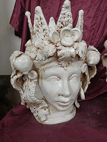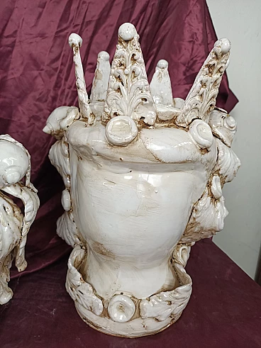 Coppia di teste in ceramica Caltagirone bianca, anni '50