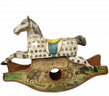Cavallo a dondolo in cartapesta policroma e legno, anni '20