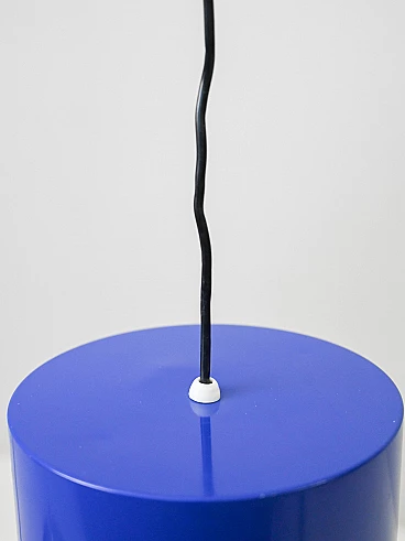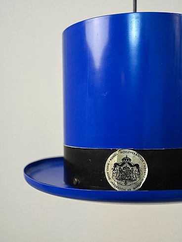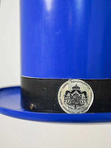 Lampada anni ‘60 di Jakobsson per Markaryd. Questo complemento d’arredo iconico di metà secolo presenta un paralume blu in lamiera dalla particolare forma a cappello. Sul bordo di colere nero è presente il marchio di autenticità. Ideale per donare alla stanza un aspetto ricercato e unico. Buone condizioni vintage. Potrebbe presentare dei segni del tempo. Per piacere presta attenzione alle fotografie.