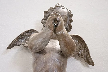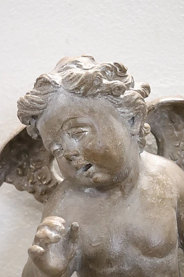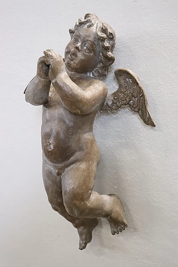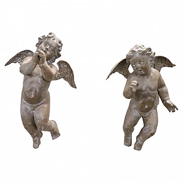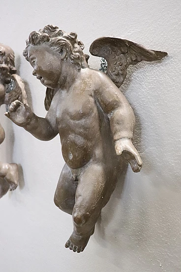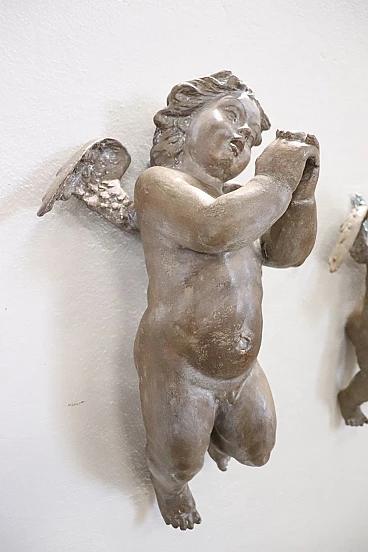 Particolare coppia di putti decorativi da appendere a muro. Recente manifattura in materiale composito dipinto con tecnica antichizzata. Condizioni perfette probabilmente uno dei due putti portava un elemento decorativo tra le mani. Vi consigliamo comunque di guardare bene in dettaglio tutte le foto allegate. Proposta ad un ottimo prezzo comunque trattabile vi invitiamo ad inviarci le vostre proposte di acquisto le valuteremo con piacere. MISURE IN CM