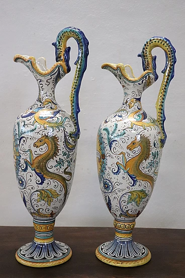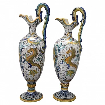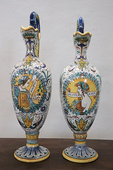 Coppia di anfore in ceramica dipinta di Deruta, inizio '900