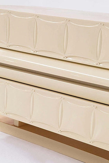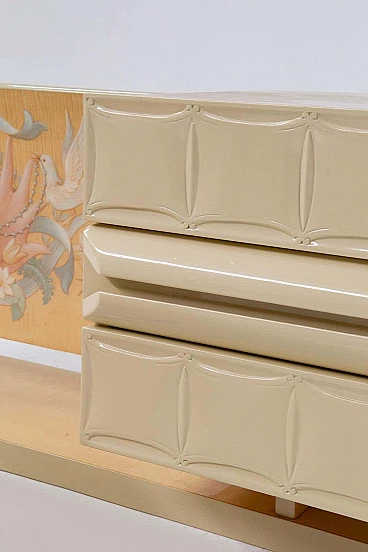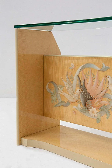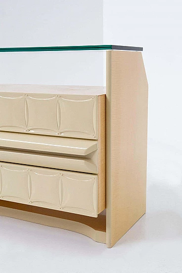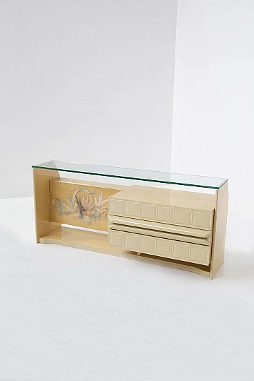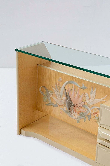 Cassettiera in legno intarsiato e vetro di Giovanni Gariboldi, anni '50