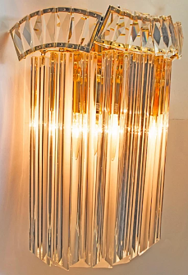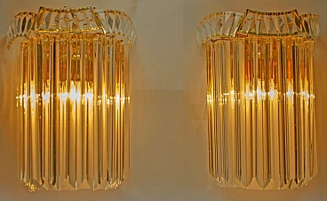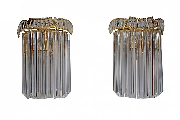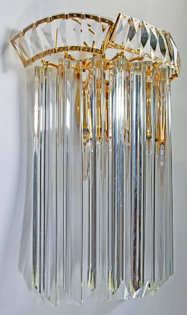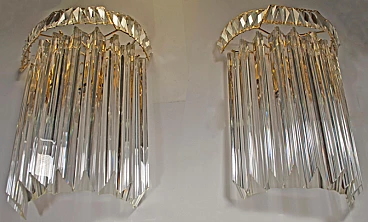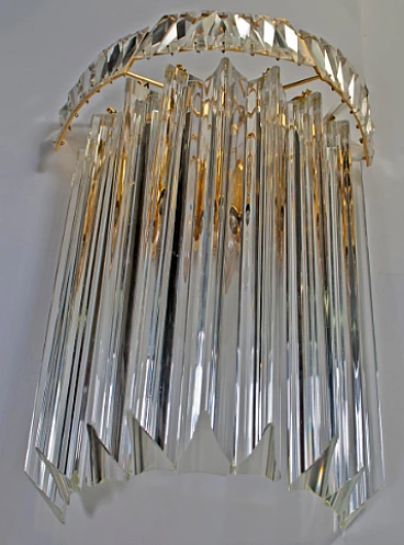 Coppia di applique Triedri in ottone e vetro di Venini, anni '70