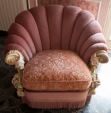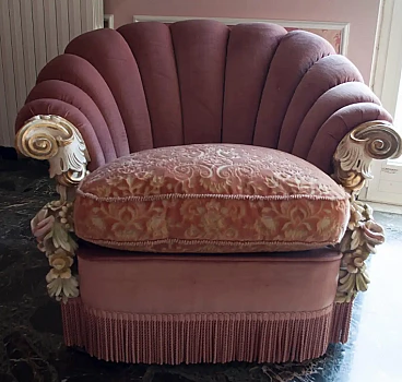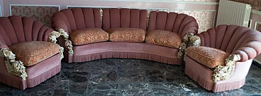Un divano e 2 poltrone in velluto in stile barocco veneziano di Silik, anni '60