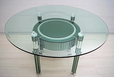 Tavolo da pranzo in cristallo specchiato di Zelino Poccioni per Mp2, anni '80