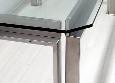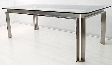 Tavolo in acciaio e cristallo di Dada Industrial Design, anni '70