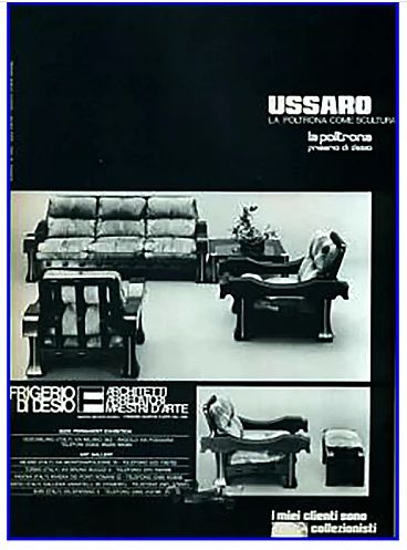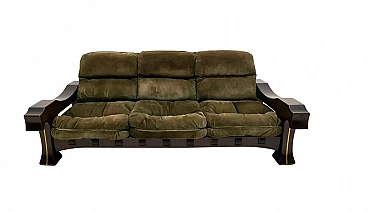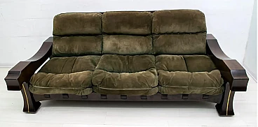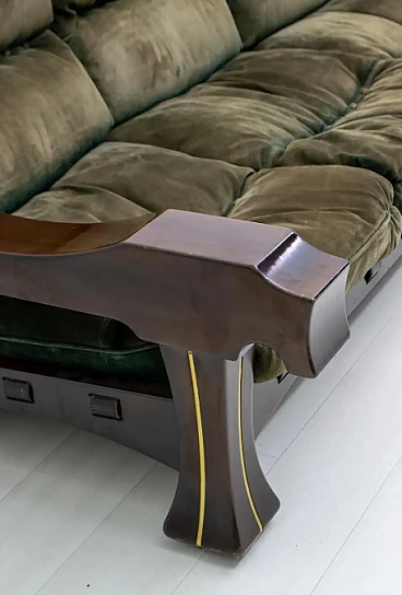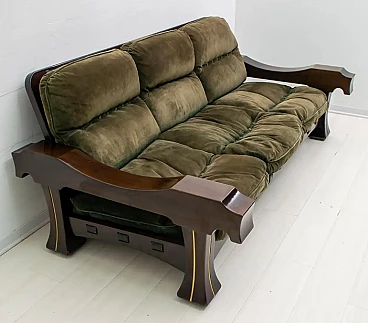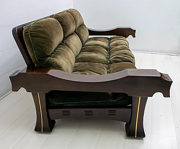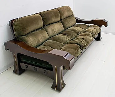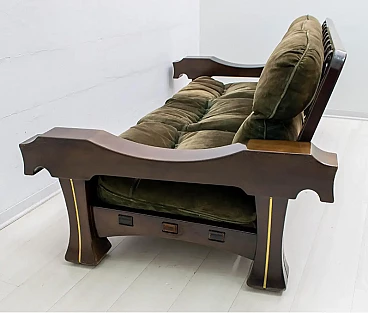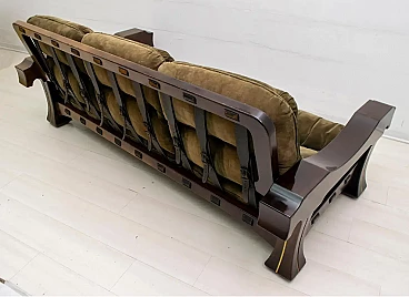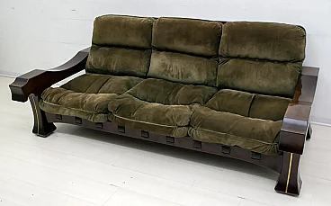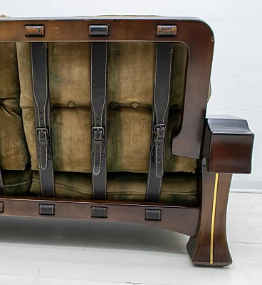 Divano in legno e pelle scamosciata Ussaro di Luciano Frigerio, anni '70