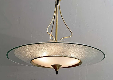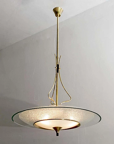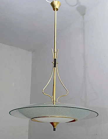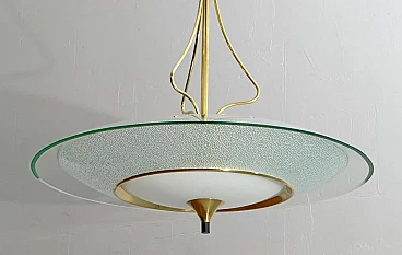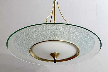 Lampadario tondo in vetro e ottone di Pietro Chiesa per Fontana Arte, anni '40