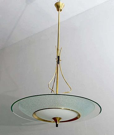 Lampadario tondo in vetro e ottone di Pietro Chiesa per Fontana Arte, anni '40 7