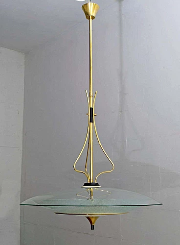 Lampadario tondo in vetro e ottone di Pietro Chiesa per Fontana Arte, anni '40 1