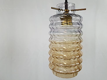 Lampadario tubolare in vetro e vetro fumè, anni '70